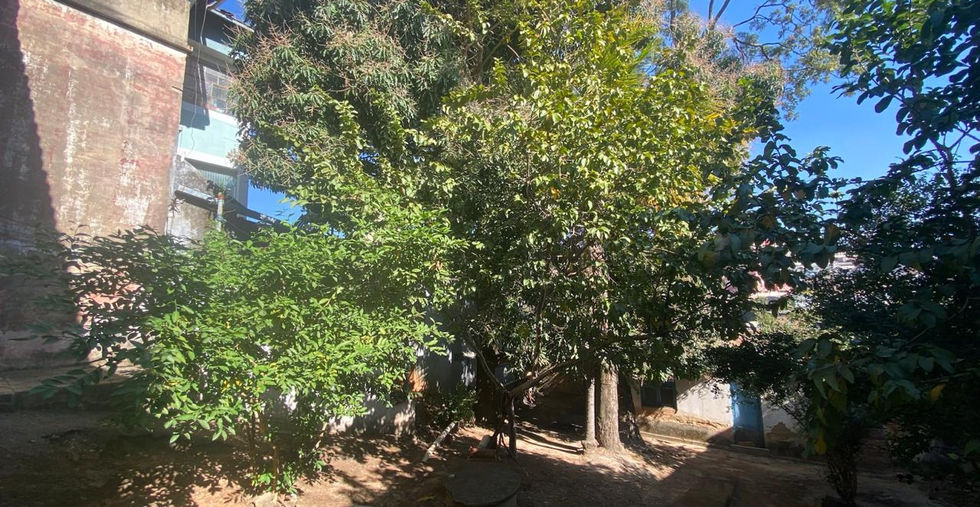 🌳 Ampla área externa com árvores frutíferas e jardim